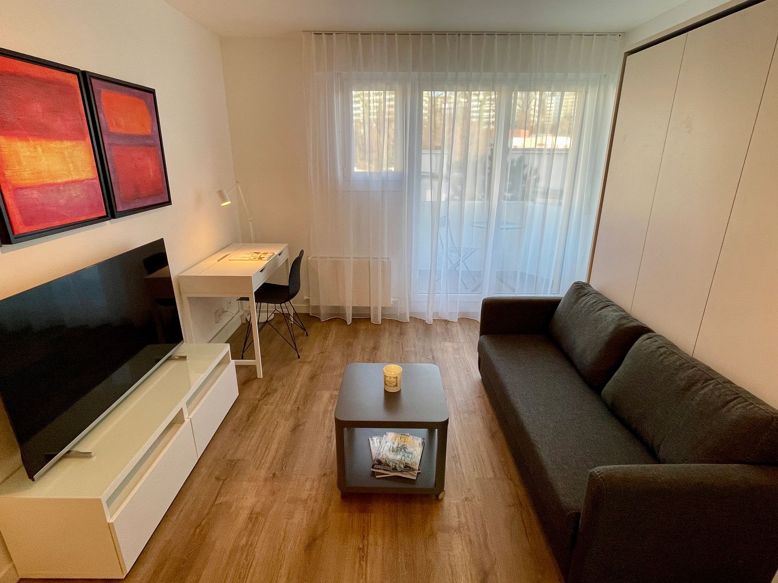 Ce studio meublé et équipé situé au dernier étage a été entièrement rénové en février 2024. Profitez d'un mobilier neuf et d'équipements haut de gamme. Proche du centre de Lausanne, le Studio Crêtes 48 dispose d'un espace de vie séparé de la cuisine et est équipé d'un lit rabattable pour maximiser l'espace.